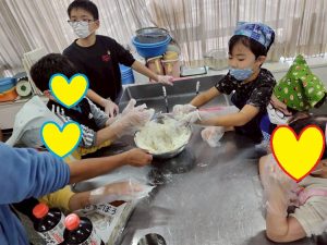 すいとん生地をこねる・包丁で切る担当をそれぞれ決めて説明をしっかり聞いて作ることが出来ました!