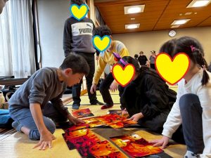 ハロウィンの絵を制限時間内に完成させるレクリエーションをおこないました!1人一枚だけパネルを持ってくるルールです。職員からの指示を聞いて制限時間内に完成させるチームもありました!