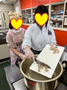すいとん生地をこねる・包丁で切る担当をそれぞれ決めて説明をしっかり聞いて作ることが出来ました!