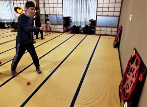 クモの巣をモチーフにした板に向かってボールを投げて何個付くのかを競うゲームをおこないました!「2個付いたよ!」と職員に報告してきたりとハロウィンレクリエーションの中で一番人気のあるゲームになり、楽しんでいる様子でした!