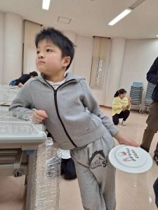 午前の部では6つのブースをそれぞれ回り、点数を競い合いました。ストラックアウトや紙皿フリスビーでは「的に当てられたよ!」や「いっぱい点数とれたよ」と職員に報告してくれました。お絵描きクイズでは児童生徒が上手に絵を描き、他の児童生徒に絵でしっかり伝えることができていました。途中休憩を取りながらそれぞれの種目を頑張り、点数を取っていきました。