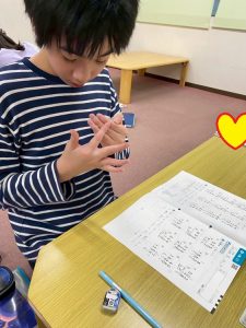 漢字や計算問題に取り組んでいる児童・生徒の様子です。計算問題では指を使いながらしっかりと確認をする児童の様子が見られます。また、漢字は「とめ、はね、はらい」に気を付けながら丁寧に書き進めることができました!
