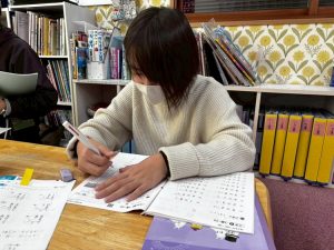 しとく館に着いて荷物を置くと、それぞれ自分の学習に自発的に取り組んでいます。分からないところも自分で考え、一度は自分なりの答えを出すように促しています。