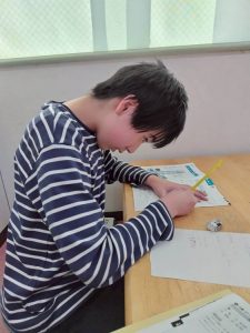 中学校生活に備えて、英語の学習を始めたり、小学校の範囲の復習に取り組むなどそれぞれが学習に取り組んでいます。分からない問題は先生に積極的に質問し、意欲的に学習しています。