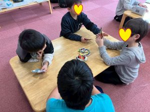 また、最近はUNOに熱中する子が増えてきています。ドローカードが上手く決まった時は「よーし!!」「やばすぎ!!」などと大盛り上がりです。