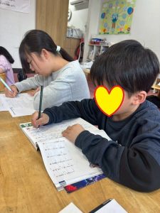 春休みに宿題が出ている子がいたり、購入したドリルに取り組む子の様子です。春休み中でも遊ぶだけではなく、それぞれが自分の勉強に一生懸命取り組んでいます。